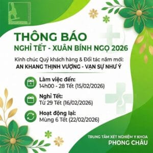 Chào đón Xuân Bính Ngọ 2026, Trung tâm Xét nghiệm Y khoa Phong Châu xin gửi lời chào trân trọng và lời cảm ơn chân thành đến Quý vị đã luôn tin tưởng, đồng hành cùng chúng tôi trong suốt thời gian qua.